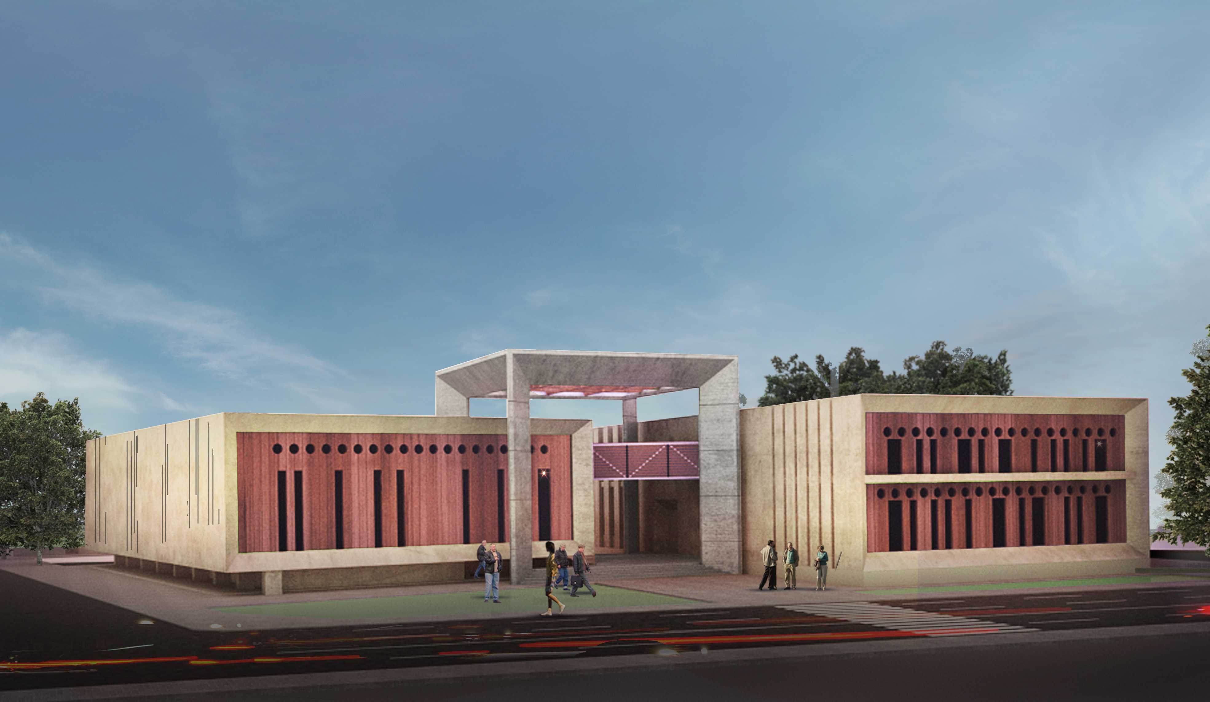 گزینه شماره 1 شامل دو حجم مجزا است که توسط یک سایبان در مرکزیت آن‌ها، که بر روی آن نیز پلی به منظور اتصال این احجام وجود دارد، با هم در ارتباط هستند. زمین تنیس موجود در سایت در این گزینه حفظ شده است و در پشت ساختمان قرار دارد. همچنین نحوه استقرار احجام در این گزینه به گونه‌ای است که از سیالیت فضایی خوبی میان حیاط پشت ساختمان و خیابان عریض شمالی برخوردار باشد.